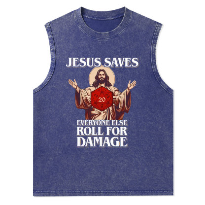 Jesus Saves Everyone Else Roll For Damage Christian Washed Tank Top