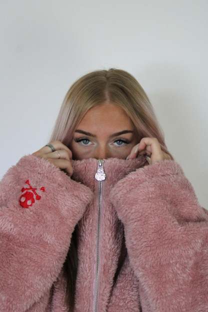Elyssa (Female Model) is 5'5 155lbs wearing a Medium (Red Sherpa)