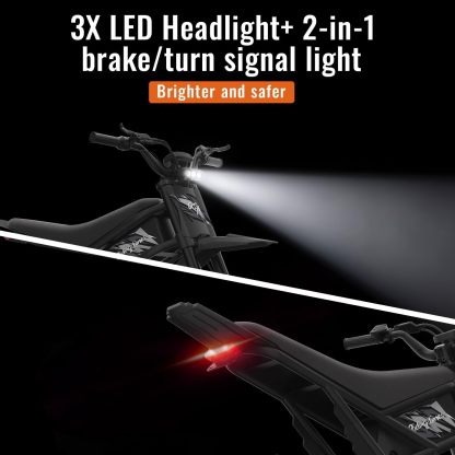• 🛑 【Brakes That Stop On A Dime (And Look Cool Doing It)】230MM dual hydraulic discs + EABS? Stomp that lever, and you’ll lock it down faster than you can say “whoa.” No skids, no drama—just instant, solid stops. And those 3X LED front/tail lights? They’re like flipping on stadium lights. Night rides? You’ll light up the trail, and everyone’ll see you coming. Safety’s never looked this tough.