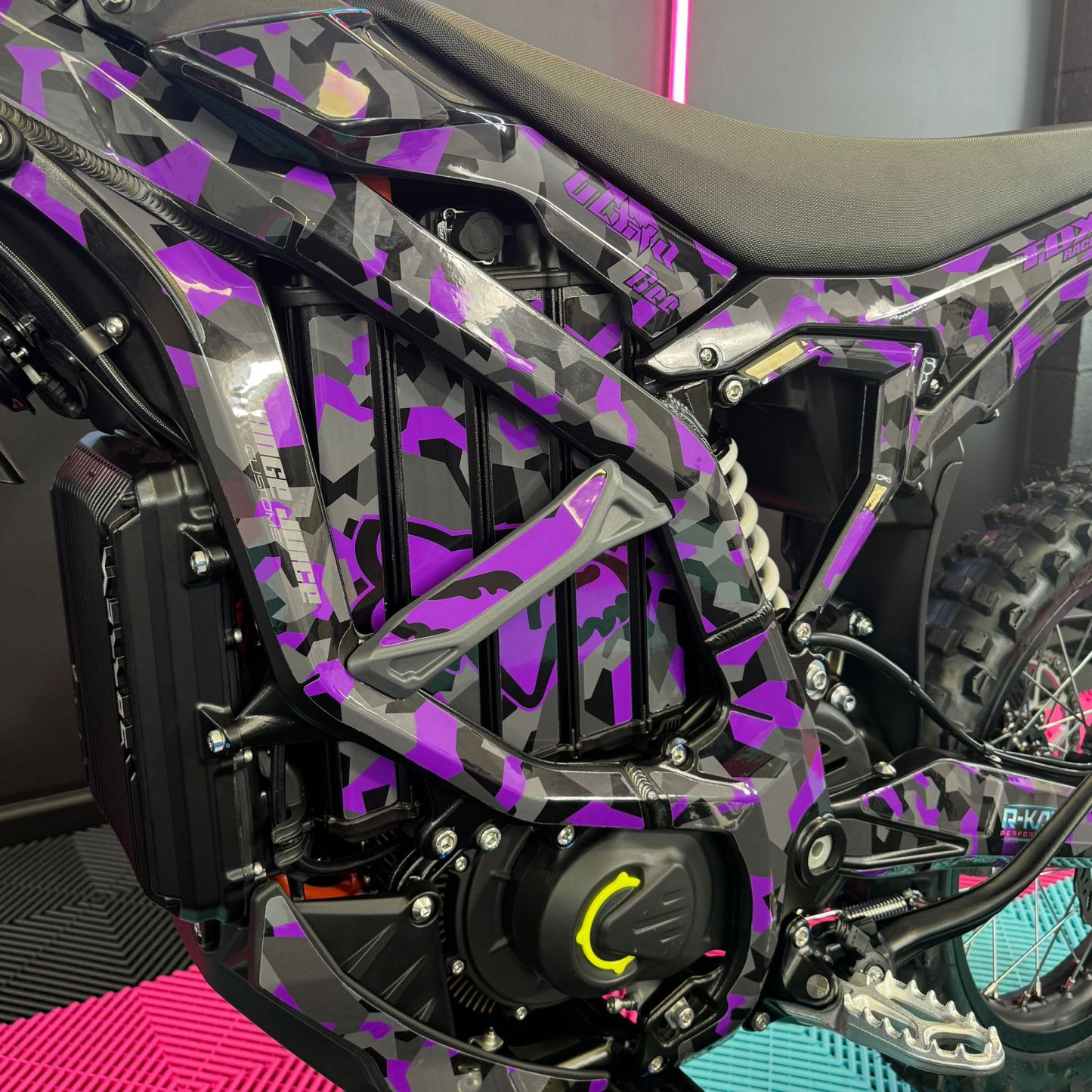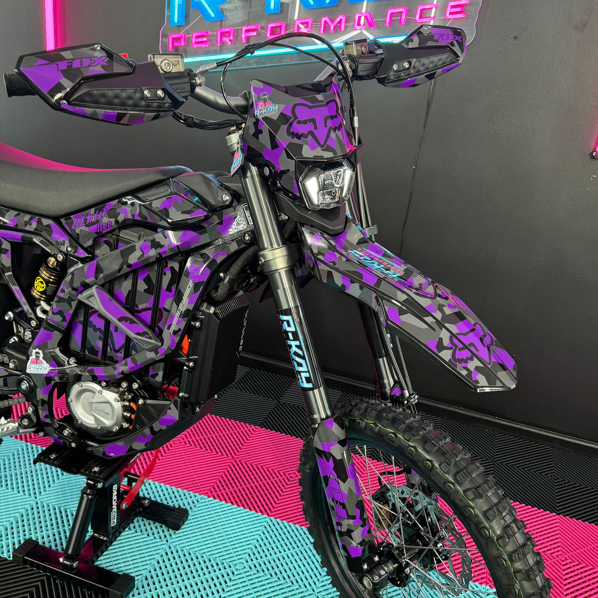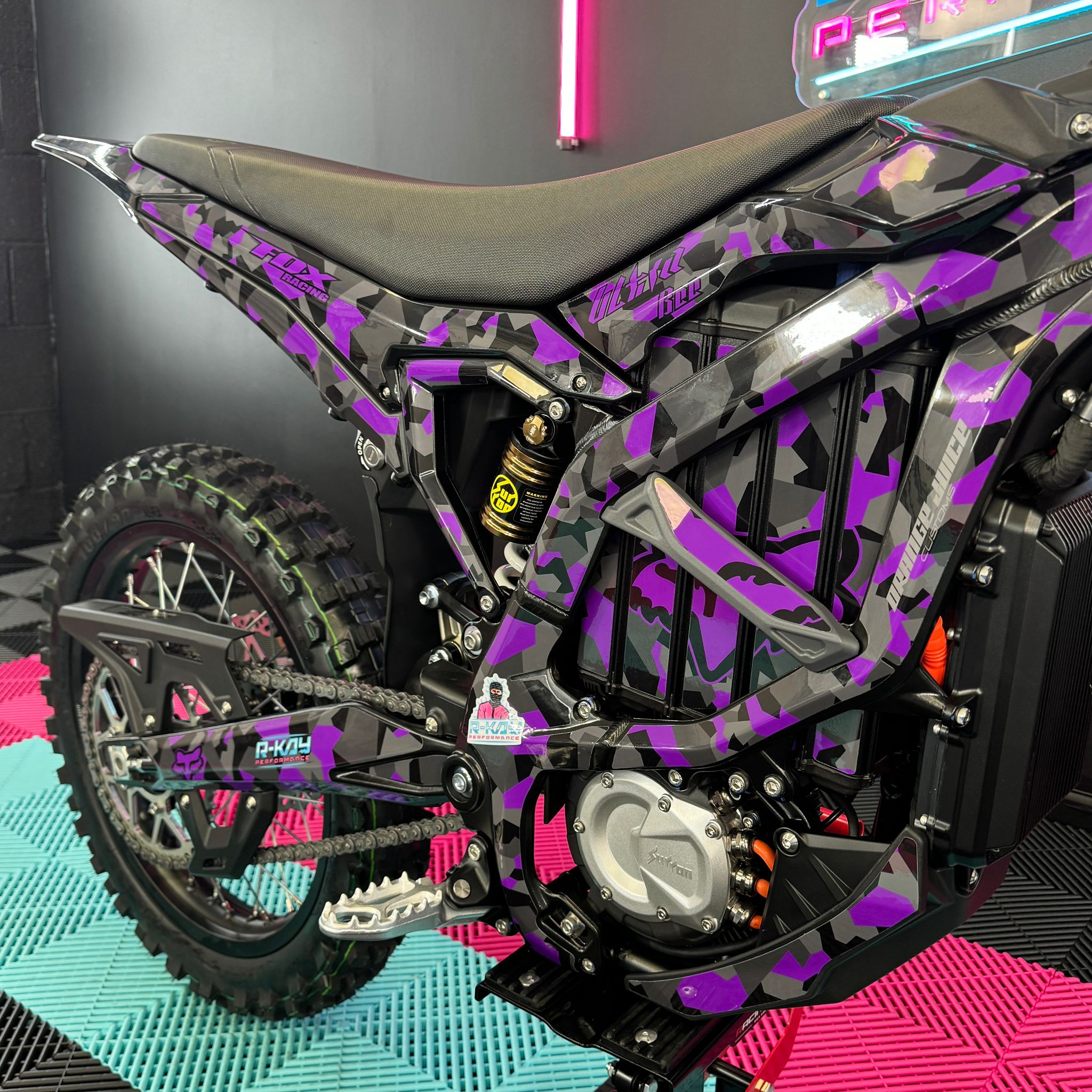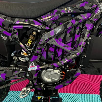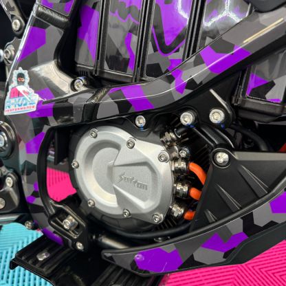The Ultra Bee, available in the sleek Carbon Black colour with Purple Camo Fox Sticker Kit, comes standard with an incredible 74v 55Ah battery. With its mind-blowing 440Nm torque drivetrain, it becomes an exceptionally quick track or trail weapon, allowing you to push your limits to the maximum. Not to mention, it has an impressive range of 80 miles! Plus, it comes with full 18 months warranty!🥇