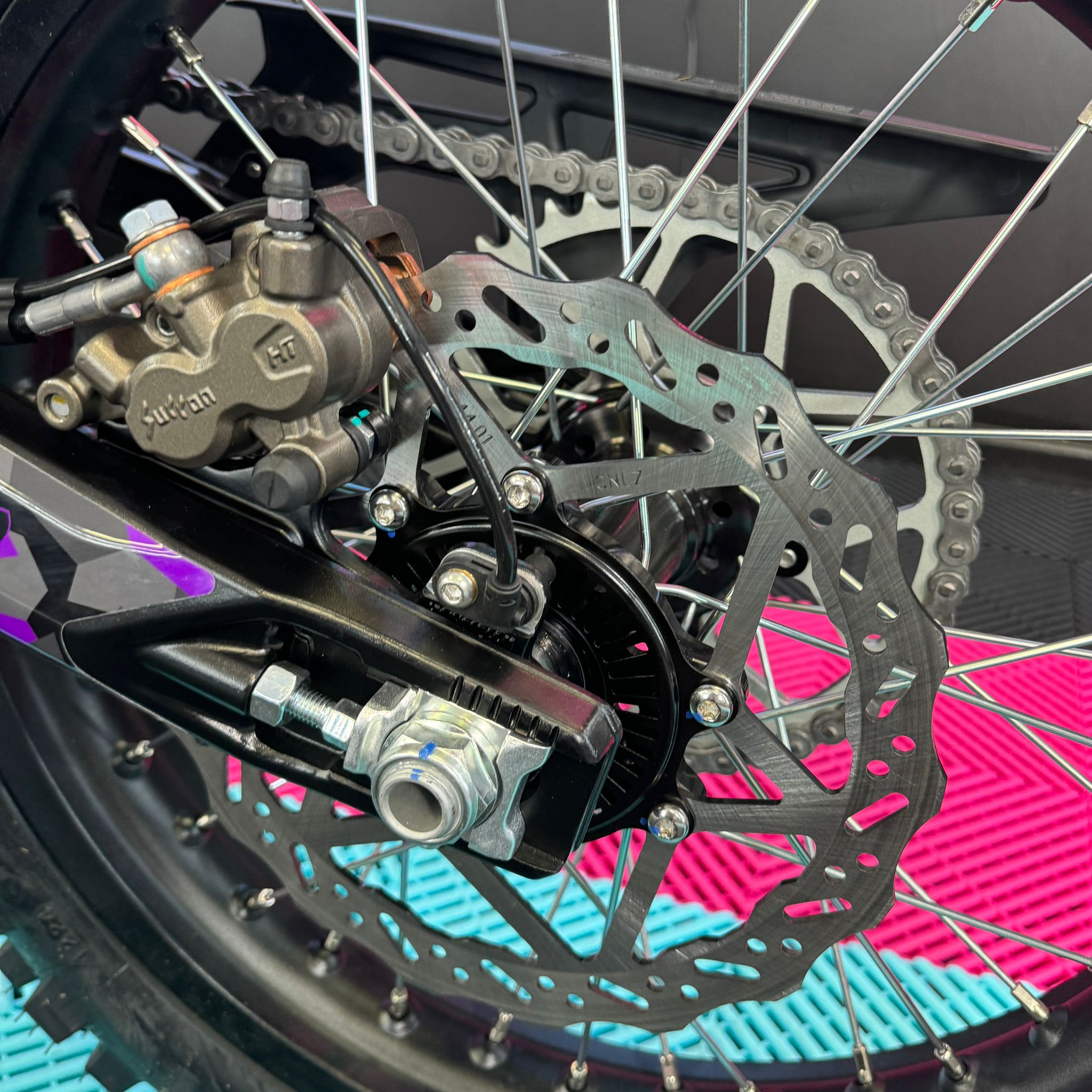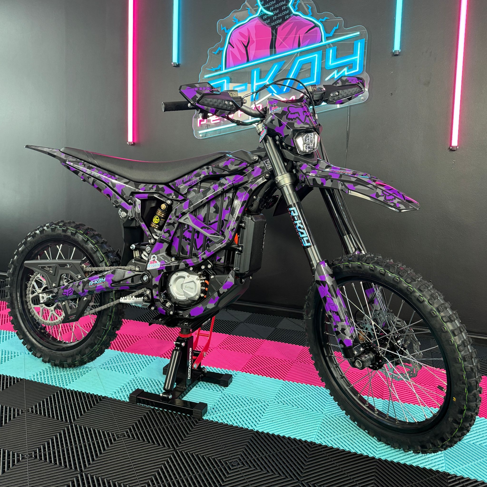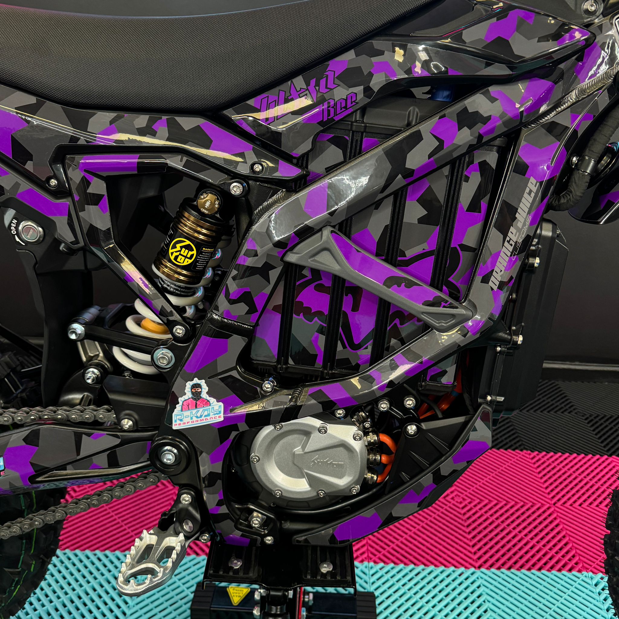 The Ultra Bee, available in the sleek Carbon Black colour with Purple Camo Fox Sticker Kit, comes standard with an incredible 74v 55Ah battery. With its mind-blowing 440Nm torque drivetrain, it becomes an exceptionally quick track or trail weapon, allowing you to push your limits to the maximum. Not to mention, it has an impressive range of 80 miles! Plus, it comes with full 18 months warranty!🥇