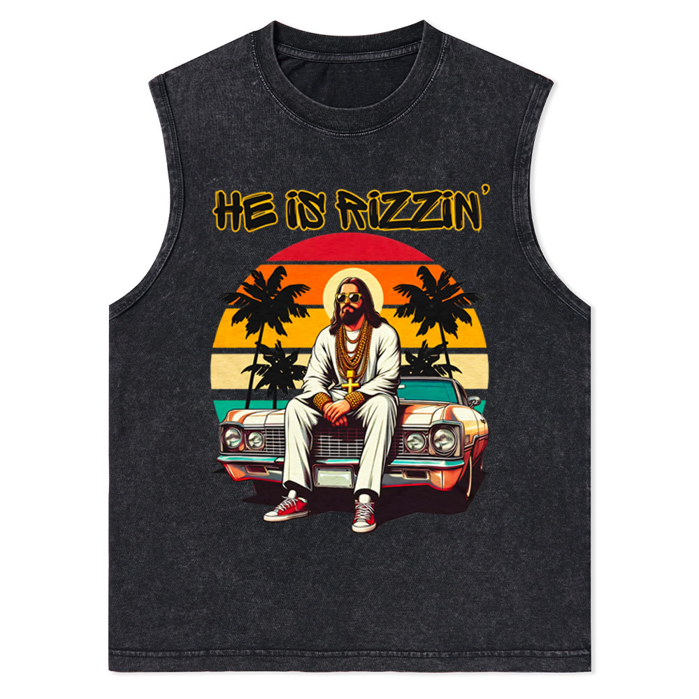He Is Rizzin Christian Washed Tank Top